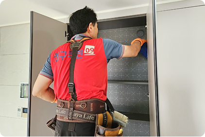 기존 살던 집에서 집 사이즈가 반절 줄어든 집으로 이사왔어요.이사 나올때는 방충망때문에 냉장고 문짝을 뗐는데, 이사온 집은 현관문이 좁아서 냉장고도 안들어가서 현관문도 떼고 들어왔어요. 너무 열심히 잘 하셔서 좋으네요.감사합니다