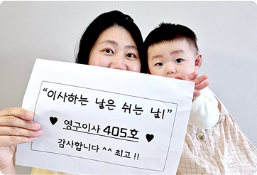 갑작스러운 이사로 여러군데 이사 업체를 알아 보다가 영구이사가 눈에 들어와 신청 했는데 빠른 견적과 원하는 날짜에 이사를 할수있어서 좋았습니다이사를 도와주시는 분들이 너무 착하고 친절하게 일 하시고 이삿짐도 조심하게 정리정돈까지 싹 해 주셨어요마지막에는 바닥 청소에 향균 청소까지 해 주시니마음까지 시원 했습니다 영구이사 273호점 감사합니다
